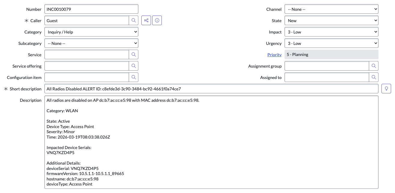 - Target URL — This will be the URL [generated by ServiceNow](#