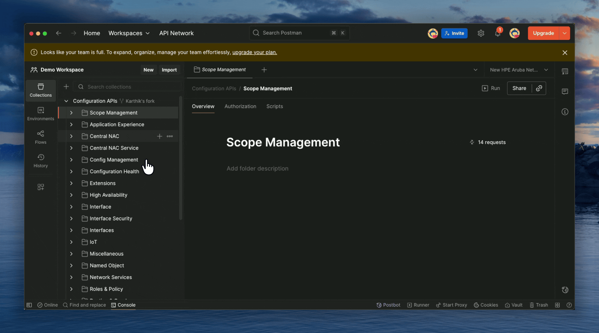 The Configuration APIs Collection corresponds to the Configuration API Reference available on the Developer Hub. It lets you view, create, and manage configuration profiles, scopes, etc. directly from Postman.