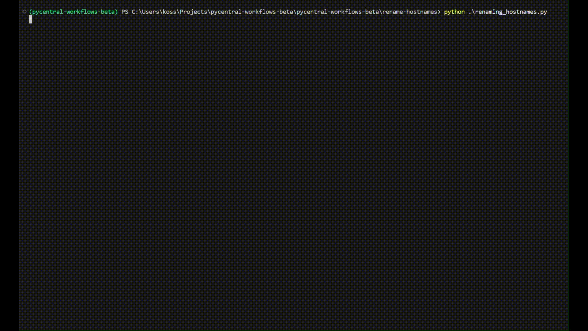 Workflow tutorial for Renaming Hostnames PyCentral script