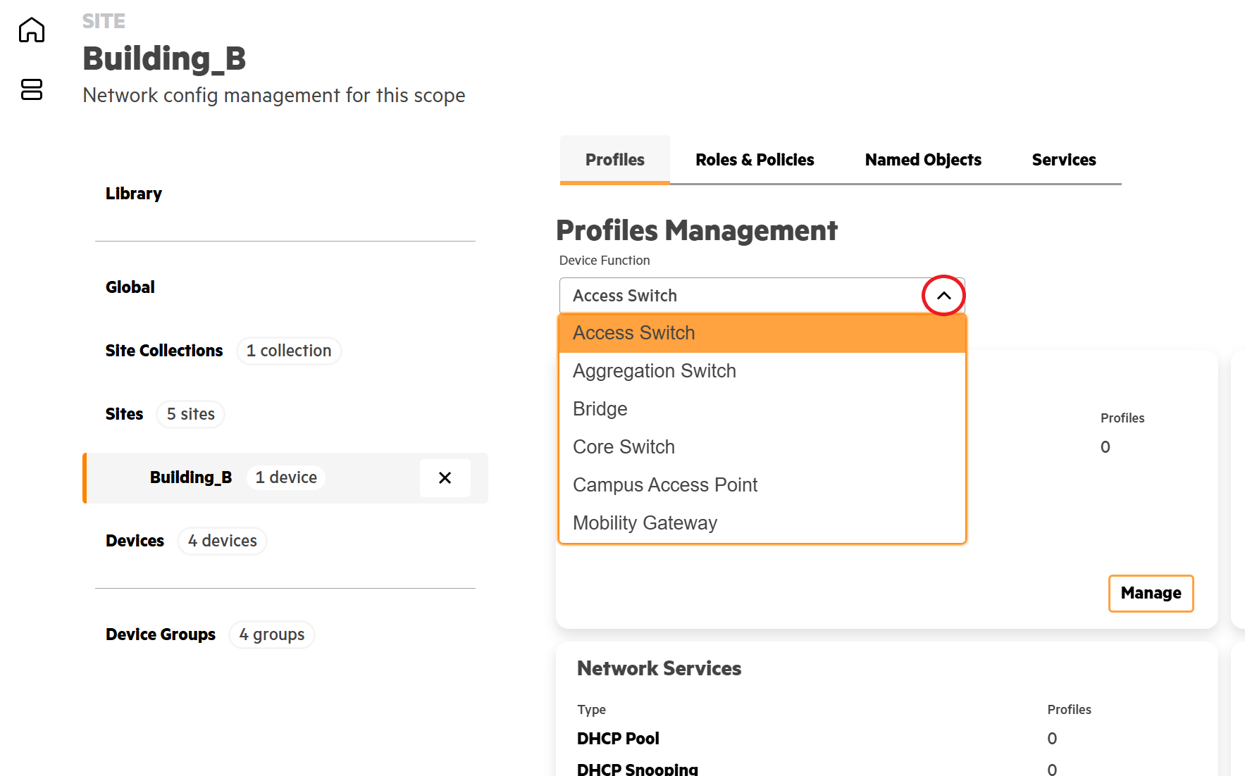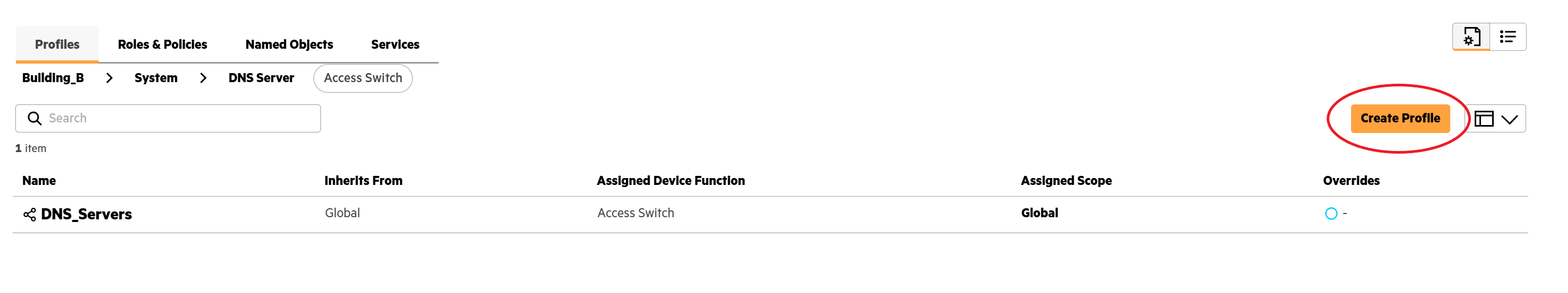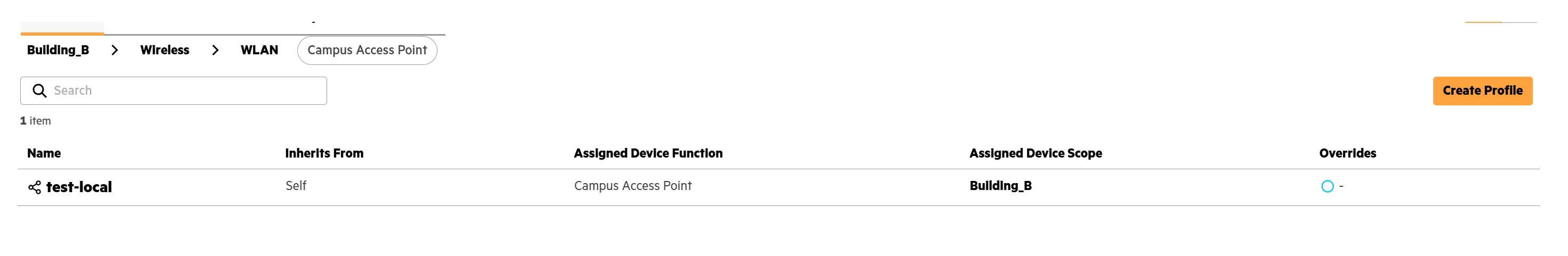 An overridden profile will apply the local profile configuration not only to the scope of the local profile, but also to all scopes that inherit from the scope of the new local profile. From our example, all campus access devices in the site Building_B would inherit this profile.
