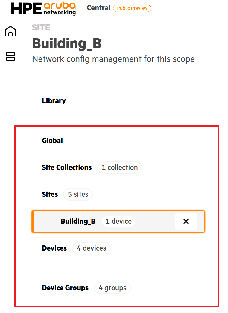 From the configuration screen select a valid scope from the sidebar. In this example we have selected the site 'Building_B'.
