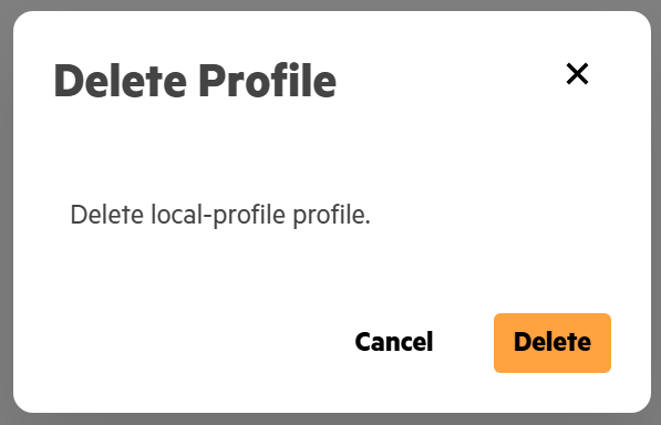 Clicking the icon will generate a popup with a delete confirmation. Confirm the delete by pressing the delete button. The local profile will now be deleted.